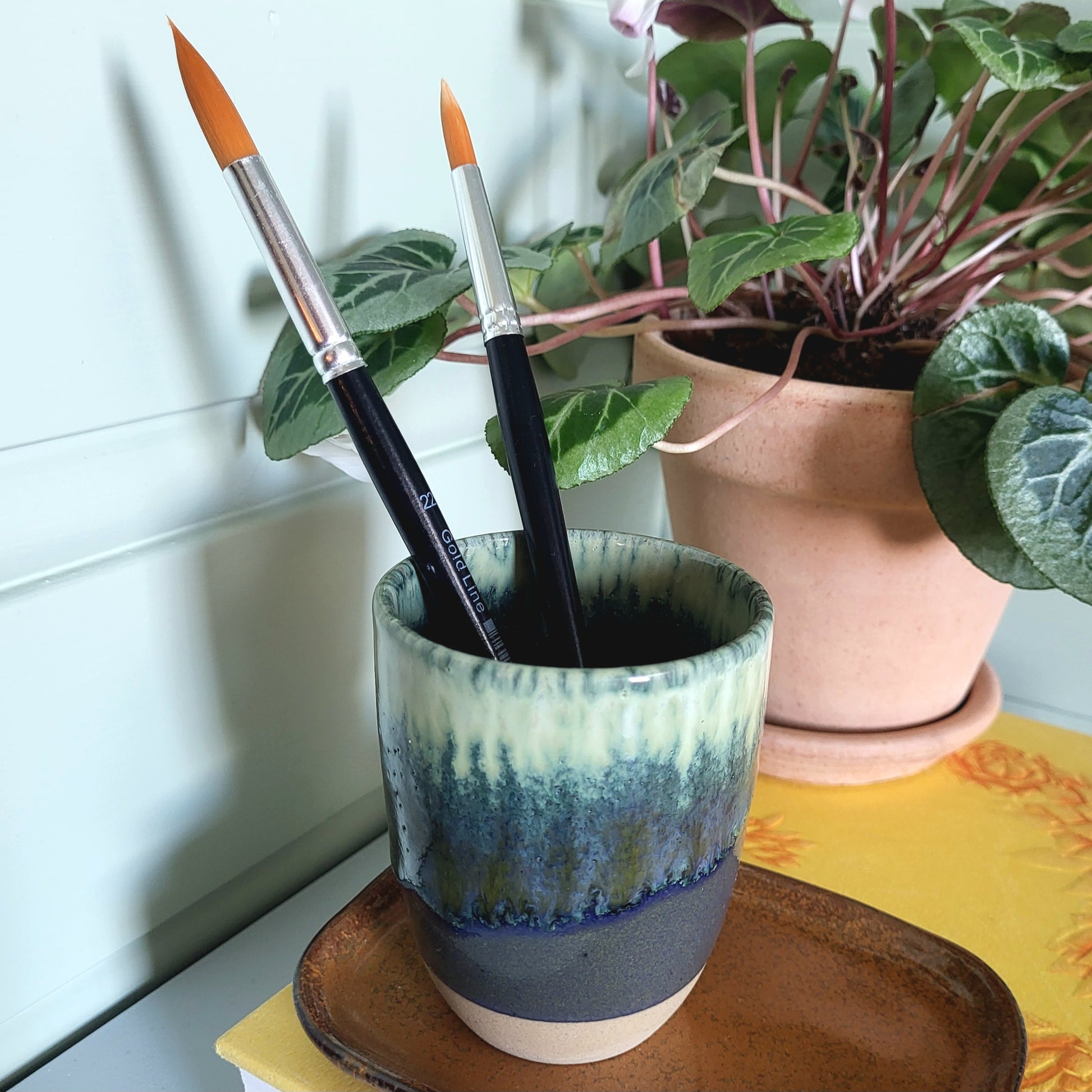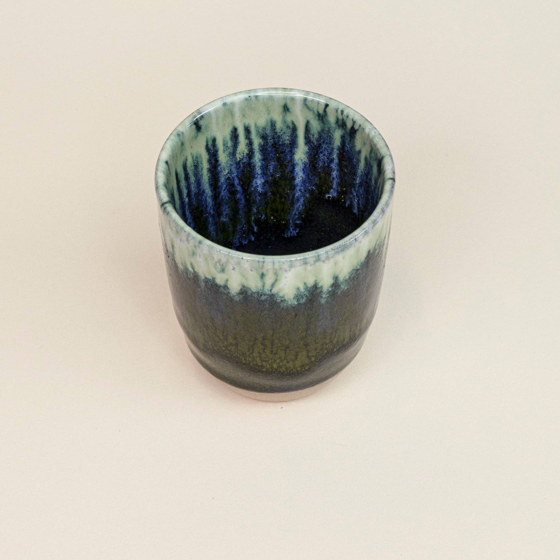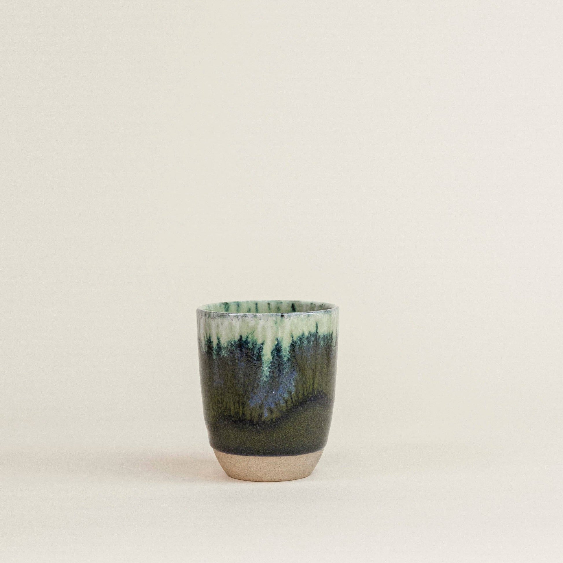 En håndlaget cappuccinokopp i portugisisk keramikk. Hver kopp får variasjoner i glasur, størrelse og fargetoner som gjør den helt unik.
